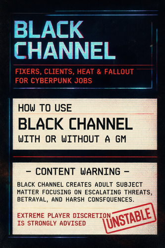 BLACK CHANNEL is a cyberpunk job and consequence engine focused on the parts most RPGs gloss over. Who hired you. What they are hiding. How attention builds. What follows you after the job is done.